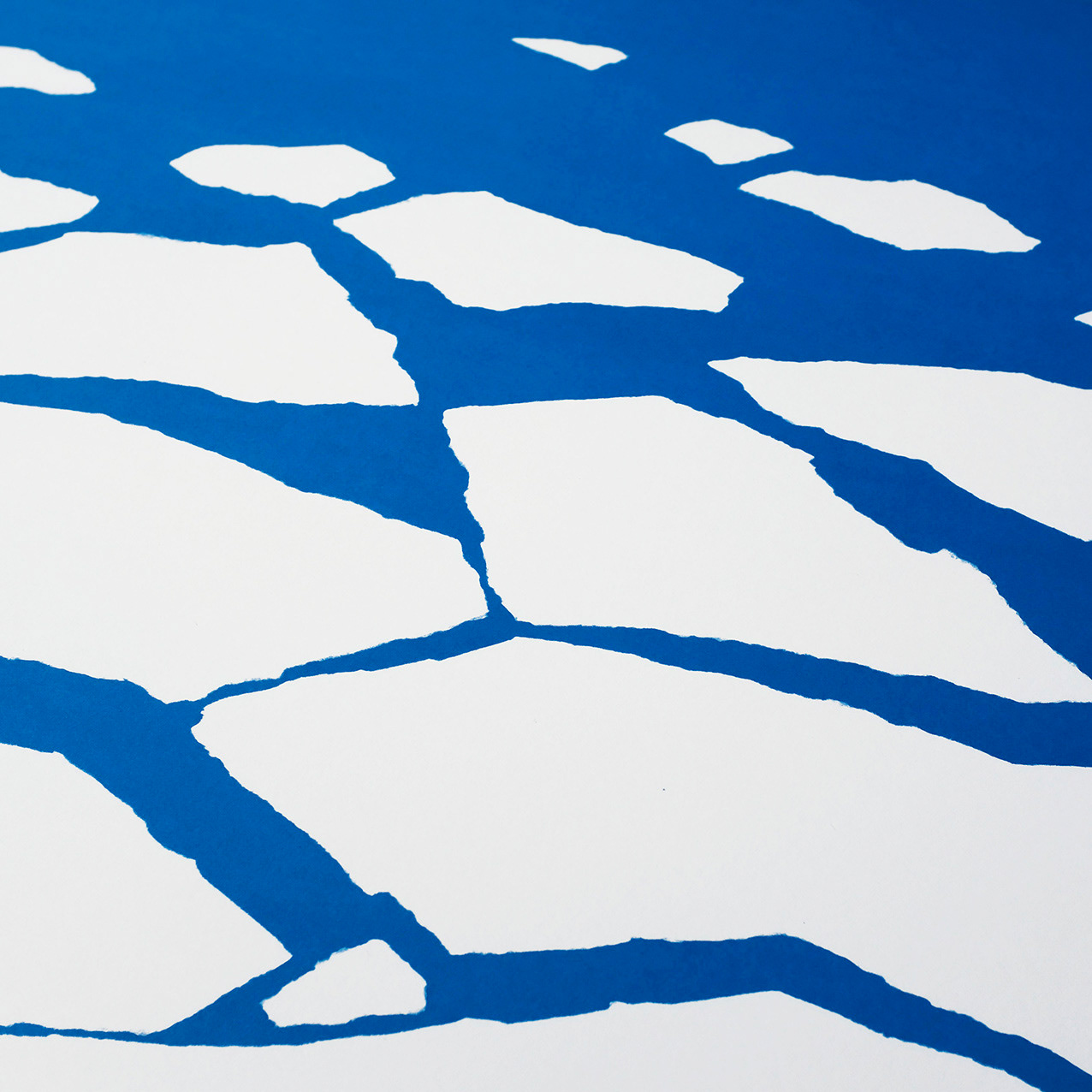 The poster, crafted from torn pieces of recycled paper, is meticulously pieced to depict a fractured iceberg. The artwork was then captured through a high-resolution flat scan. The cyclist signifies a step towards a healthier planet. Wheeling for a better world.